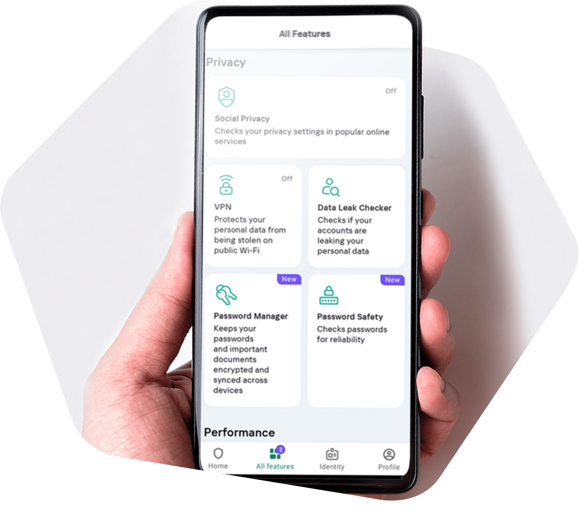 From security essentials like anti-phishing and weak settings scan to extended privacy protection tools – password management, VPN, data leak checker,